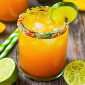 - In a pitcher, combine simple syrup, lime juice, orange juice, mango nectar, and sparkling water. Stir to combine.